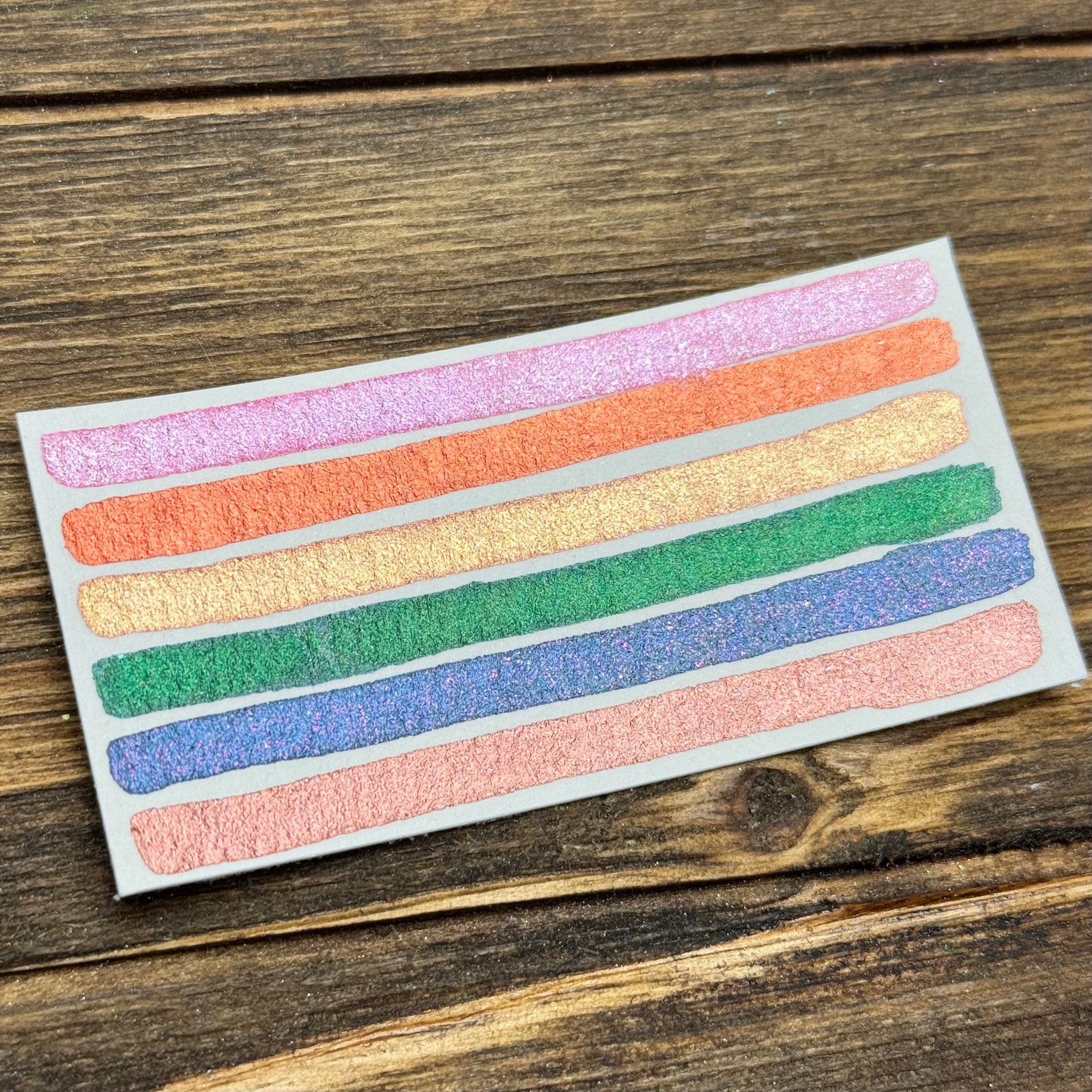 Our sample-sized pans hold a generous 1/4 of a half pan, allowing you to test out new paints without committing to a full set. Whether you're an aspiring artist or a seasoned pro, Samplers are the ideal way to broaden your palette and unleash your creativity. Please be aware that some paints may be glued into the bottom of the pans due to the nature of their pigments. While I do package samplers safely, KMS Watercolor is NOT responsible for any samplers that arrive broken.