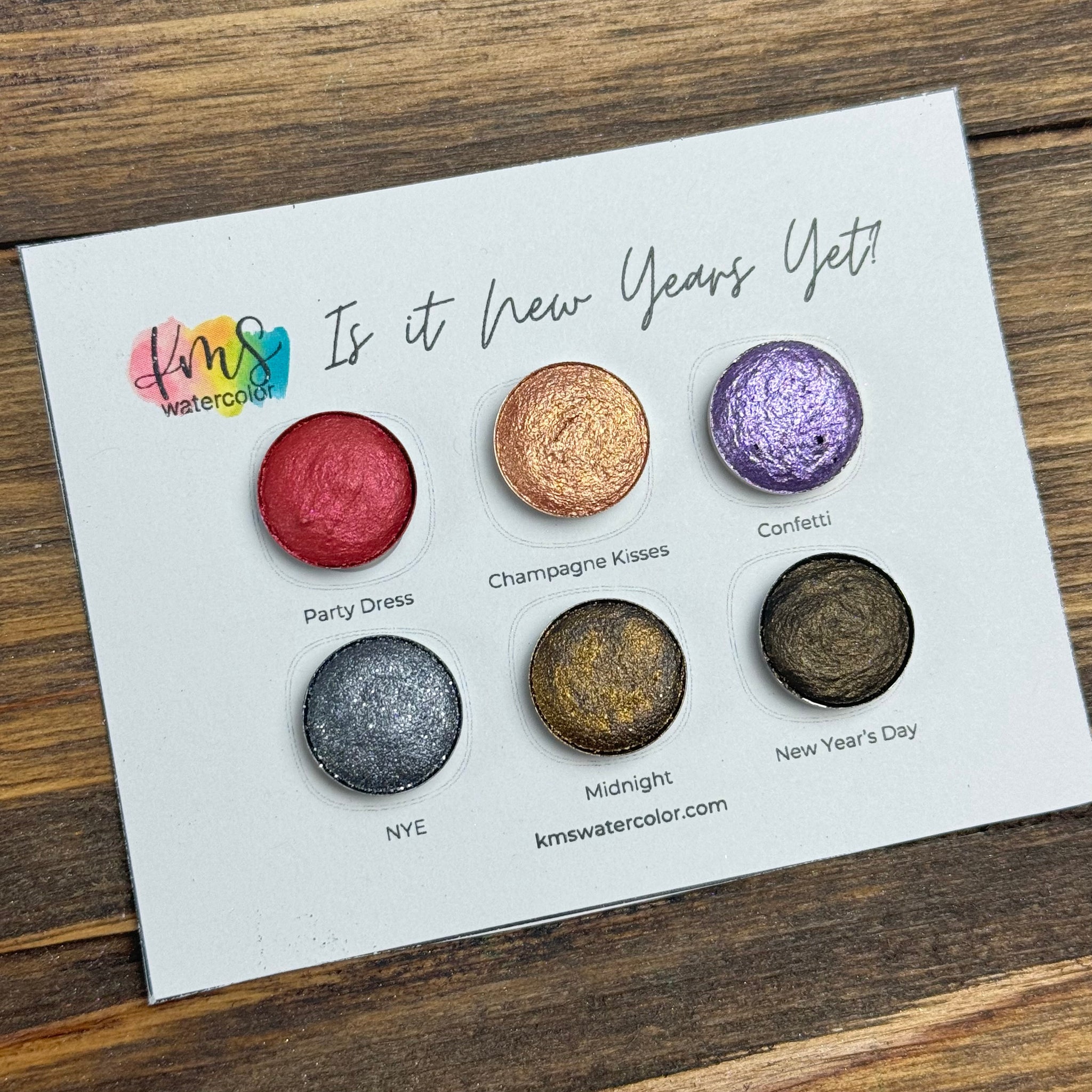 KMS Watercolor “Is It New Years Yet?” contains 6 shimmer paints.