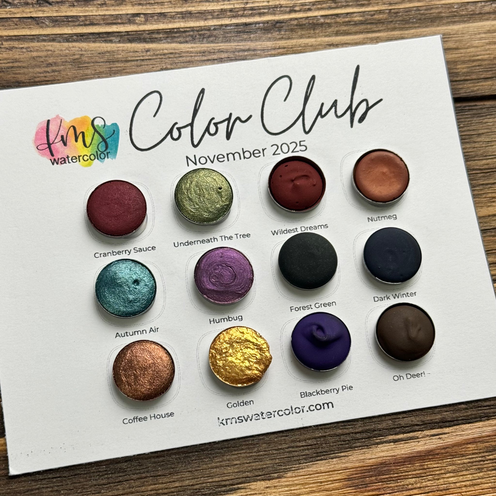 KMS Watercolor “November 2025 Color Club” contains 12 paints (6 shimmer, 6 matte)
