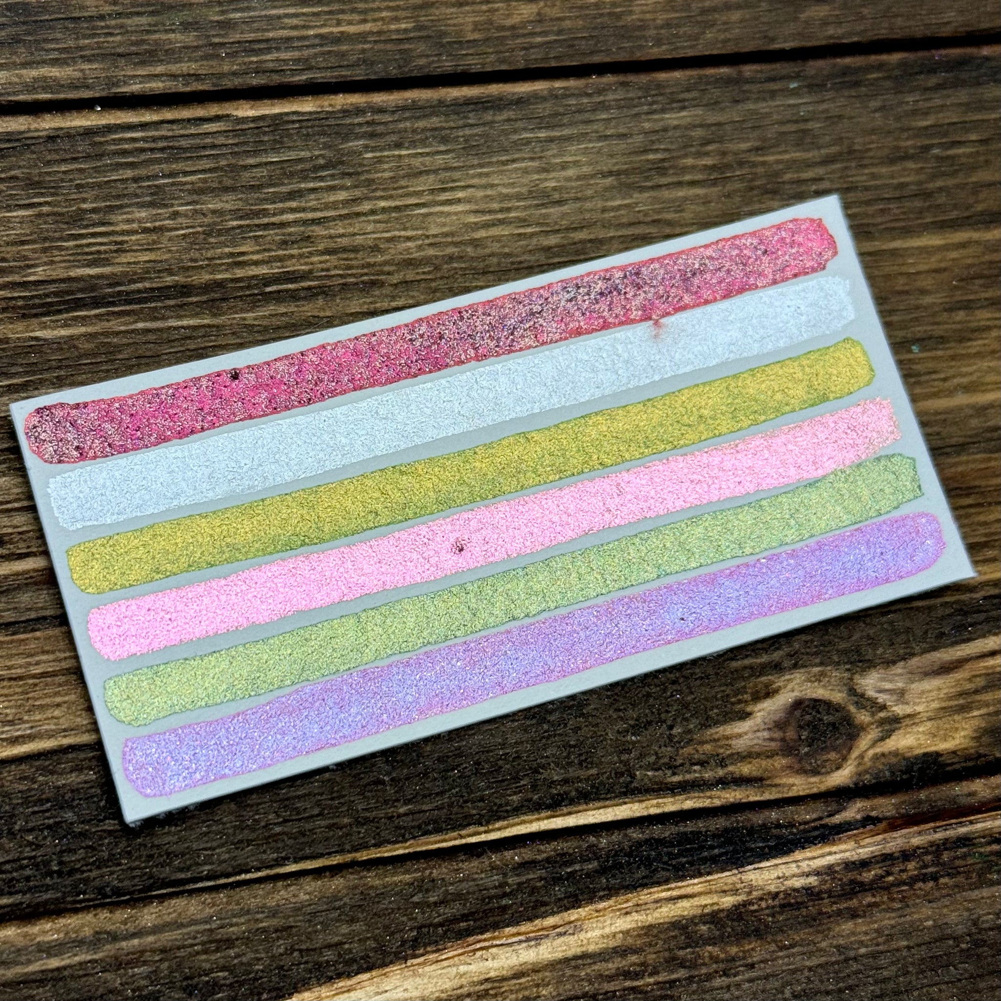 Our sample-sized pans hold a generous 1/4 of a half pan, allowing you to test out new paints without committing to a full set. Whether you're an aspiring artist or a seasoned pro, Samplers are the ideal way to broaden your palette and unleash your creativity. Please be aware that some paints may be glued into the bottom of the pans due to the nature of their pigments. While I do package samplers safely, KMS Watercolor is NOT responsible for any samplers that arrive broken.