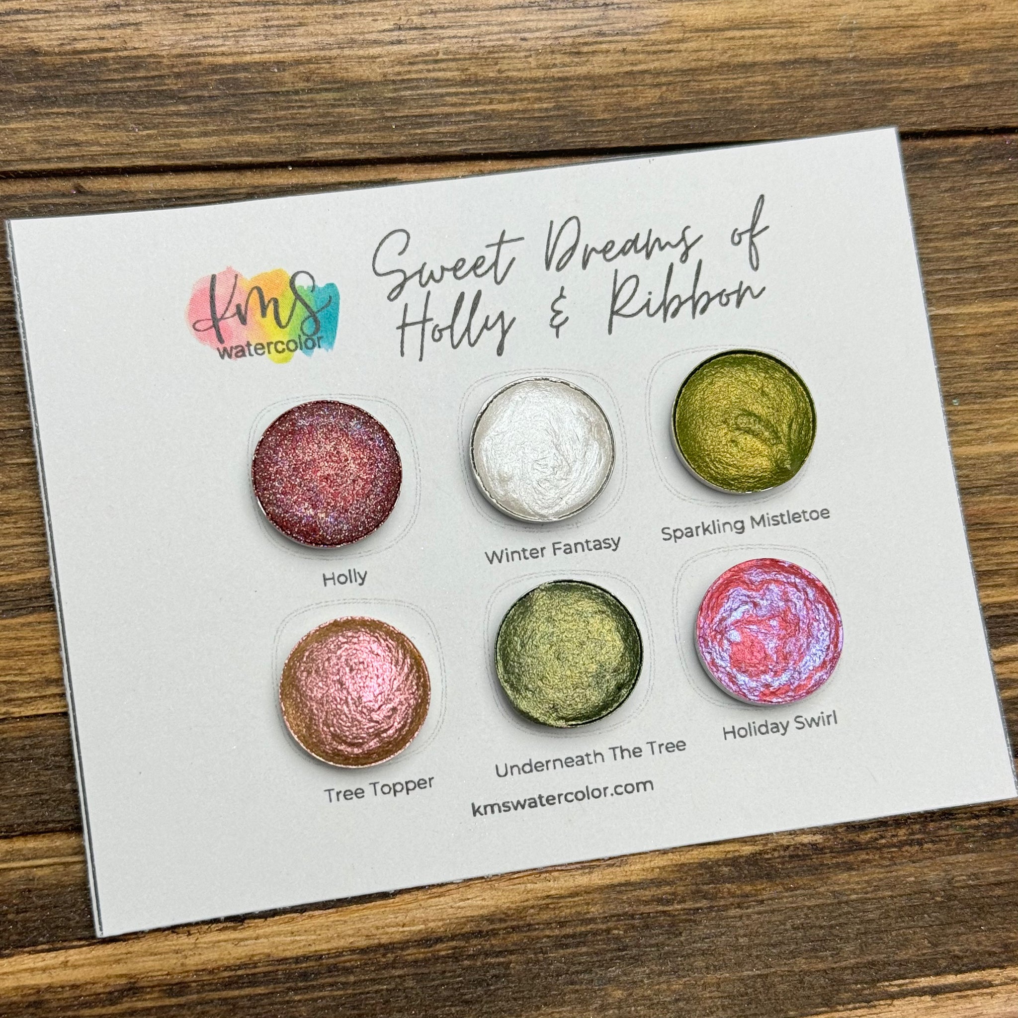 KMS Watercolor “Sweet Dreams of Holly & Ribbon” contains 6 shimmer paints.
