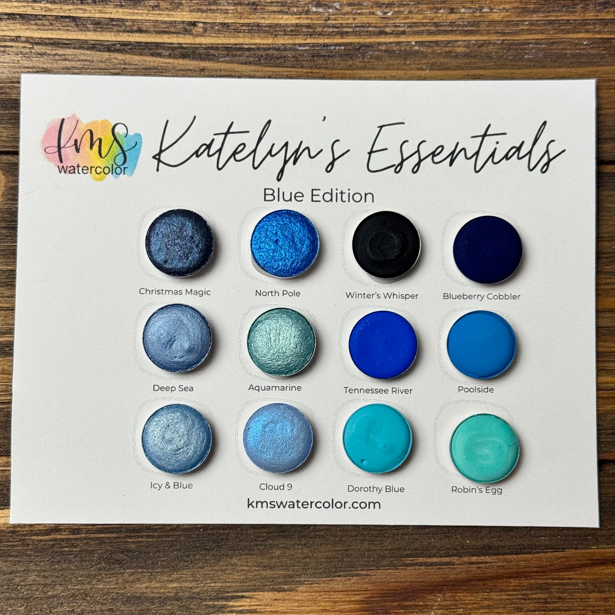 KMS Watercolor “Katelyn’s Essentials: Blue Edition” contains 12 paints (6 shimmer, 6 matte)